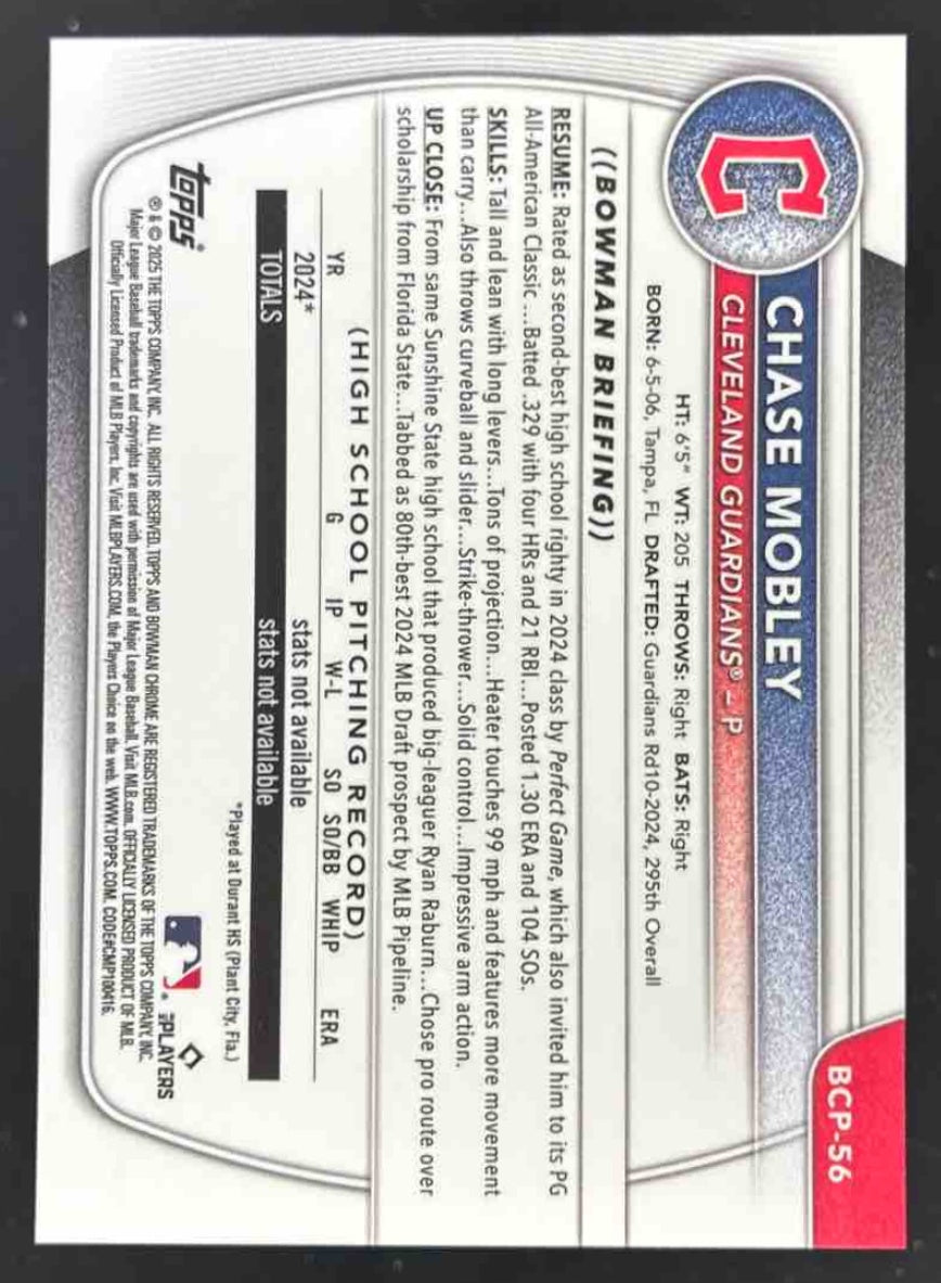 2025 Bowman Chrome Prospects Peanuts Refractor #BCP-56 Chase Mobley