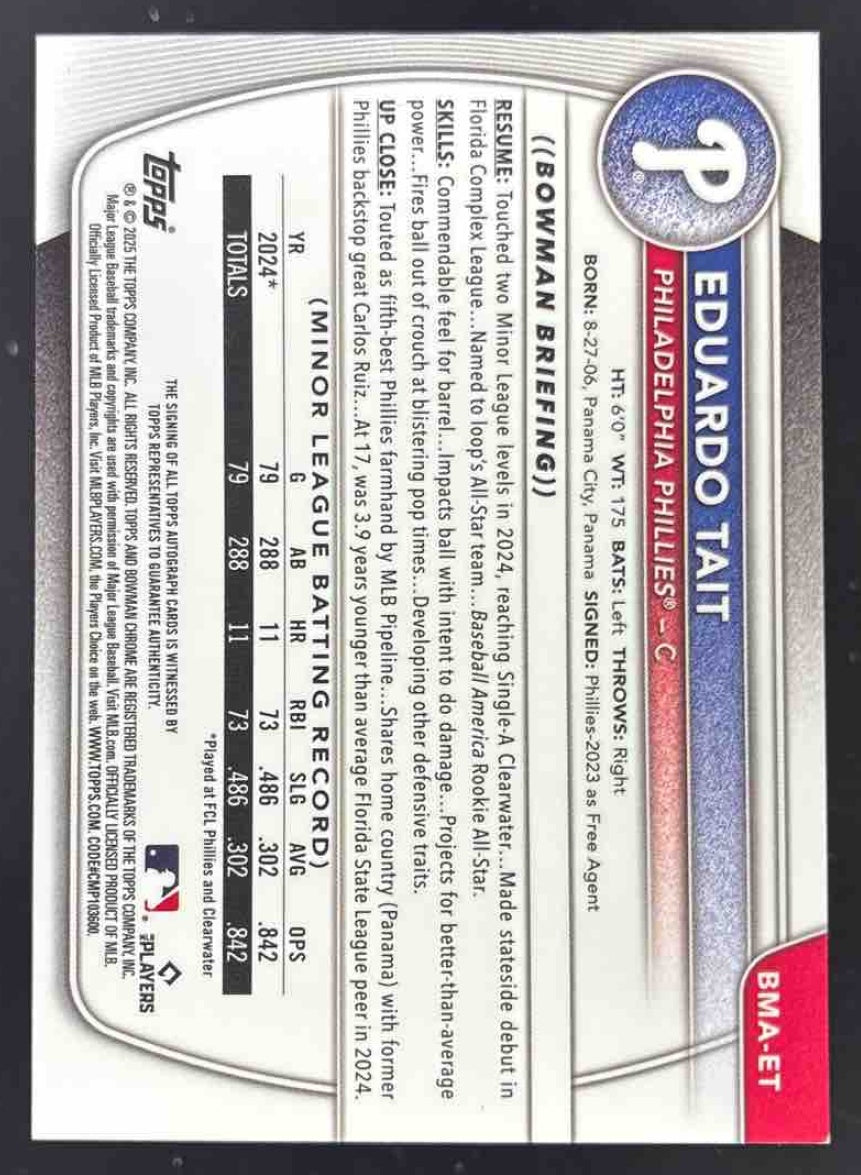 2025 Bowman Chrome Prospect Mega Box Green Refractors #ET Eduardo Tait Auto /99