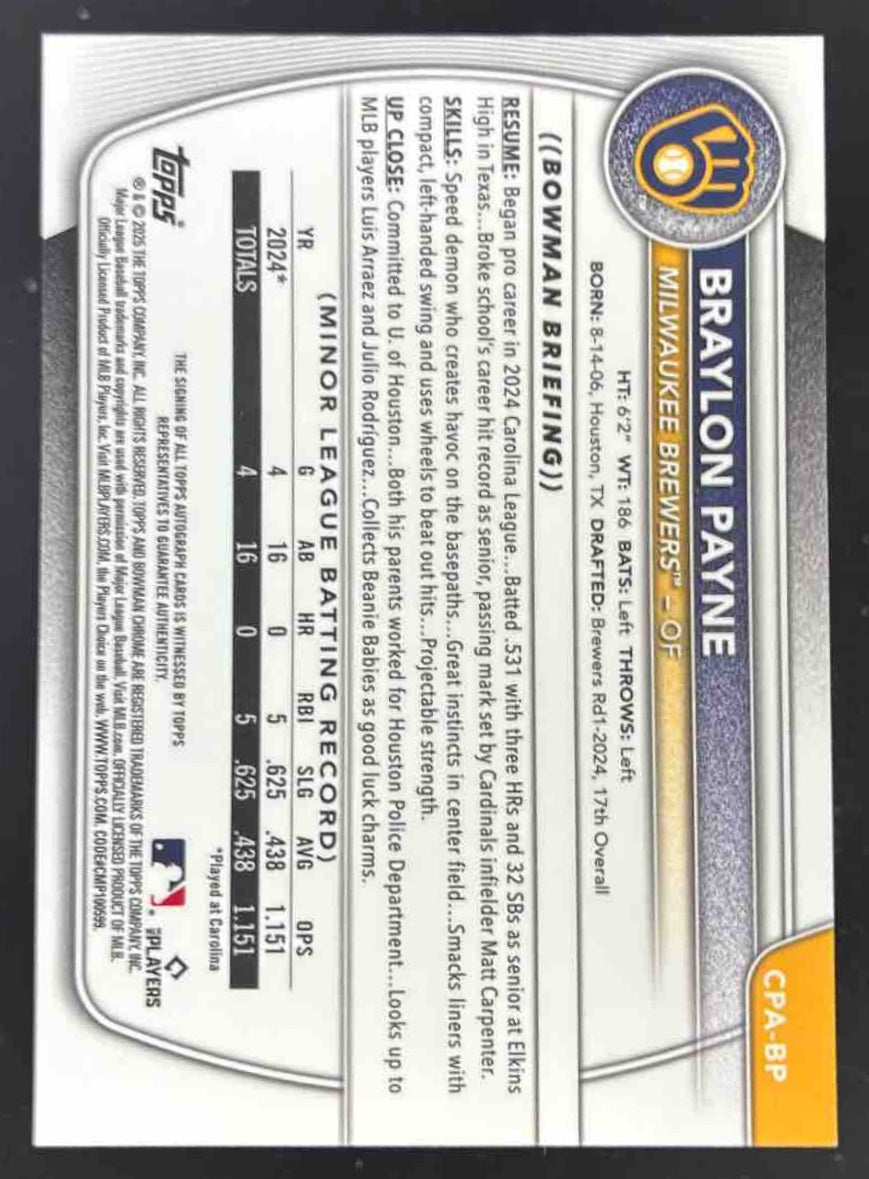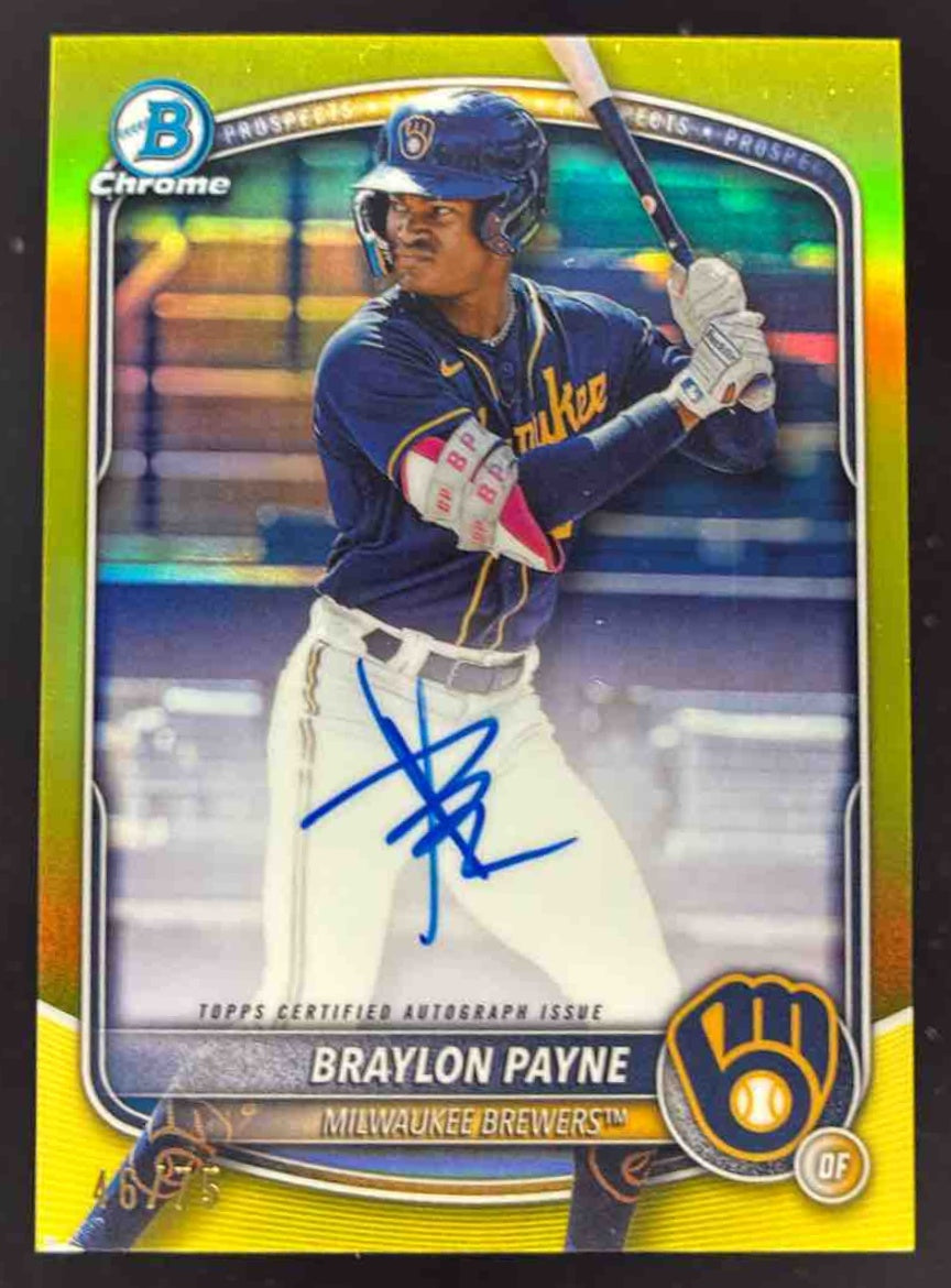 2025 Bowman Chrome Autograph Yellow Refractor #CPA-BP Braylon Payne Auto /75