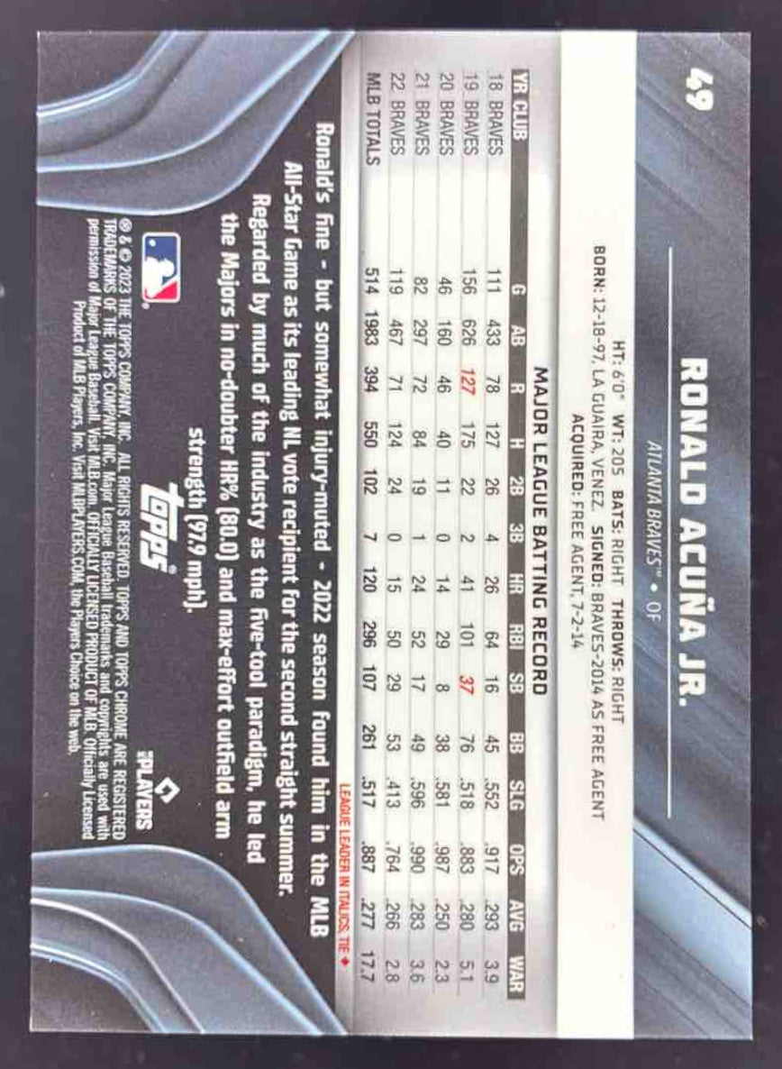 2023 Topps Chrome Black Magenta Refractor #49 Ronald Acuna Jr. /10