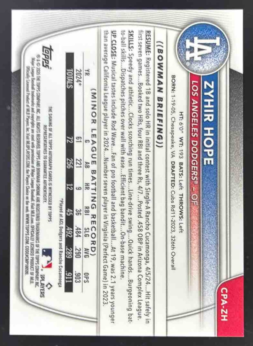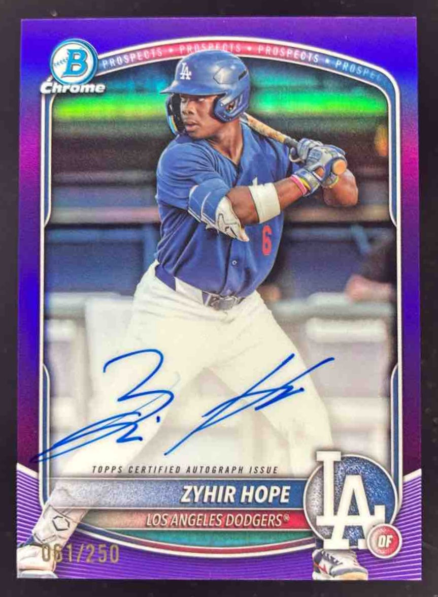 2025 Bowman Chrome Prospect Autographs Purple Refractor #ZH Zyhir Hope Auto /250