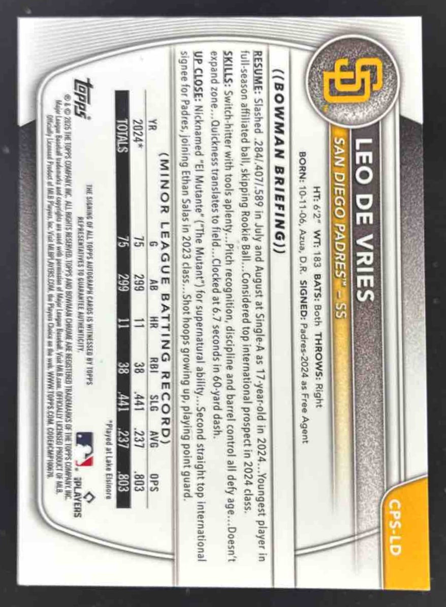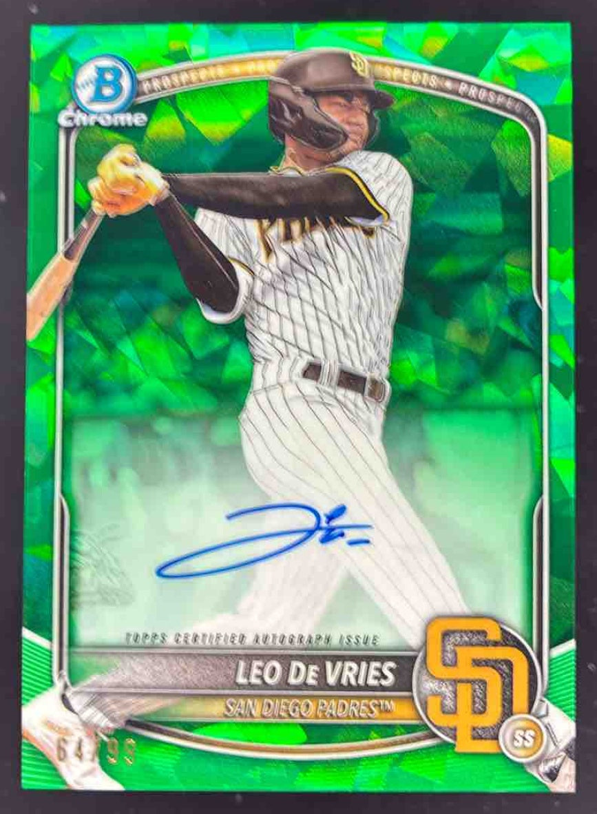 2025 Bowman Sapphire Chrome Autographs Green Refractors Leo De Vries Auto /99