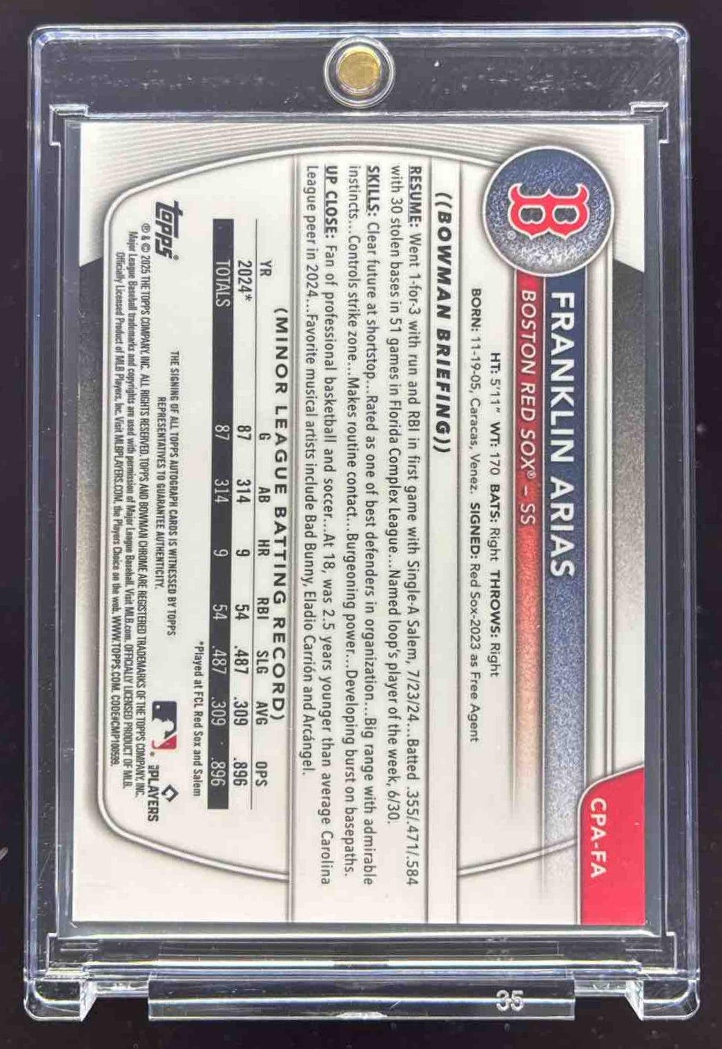 2025 Bowman Chrome Autograph Peanuts Refractor #CPA-FA Franklin Arias RC Auto /5