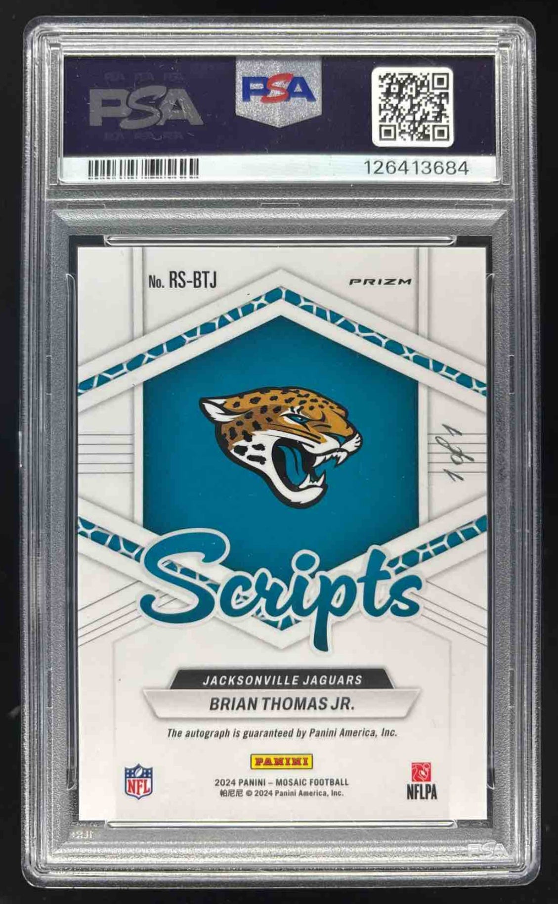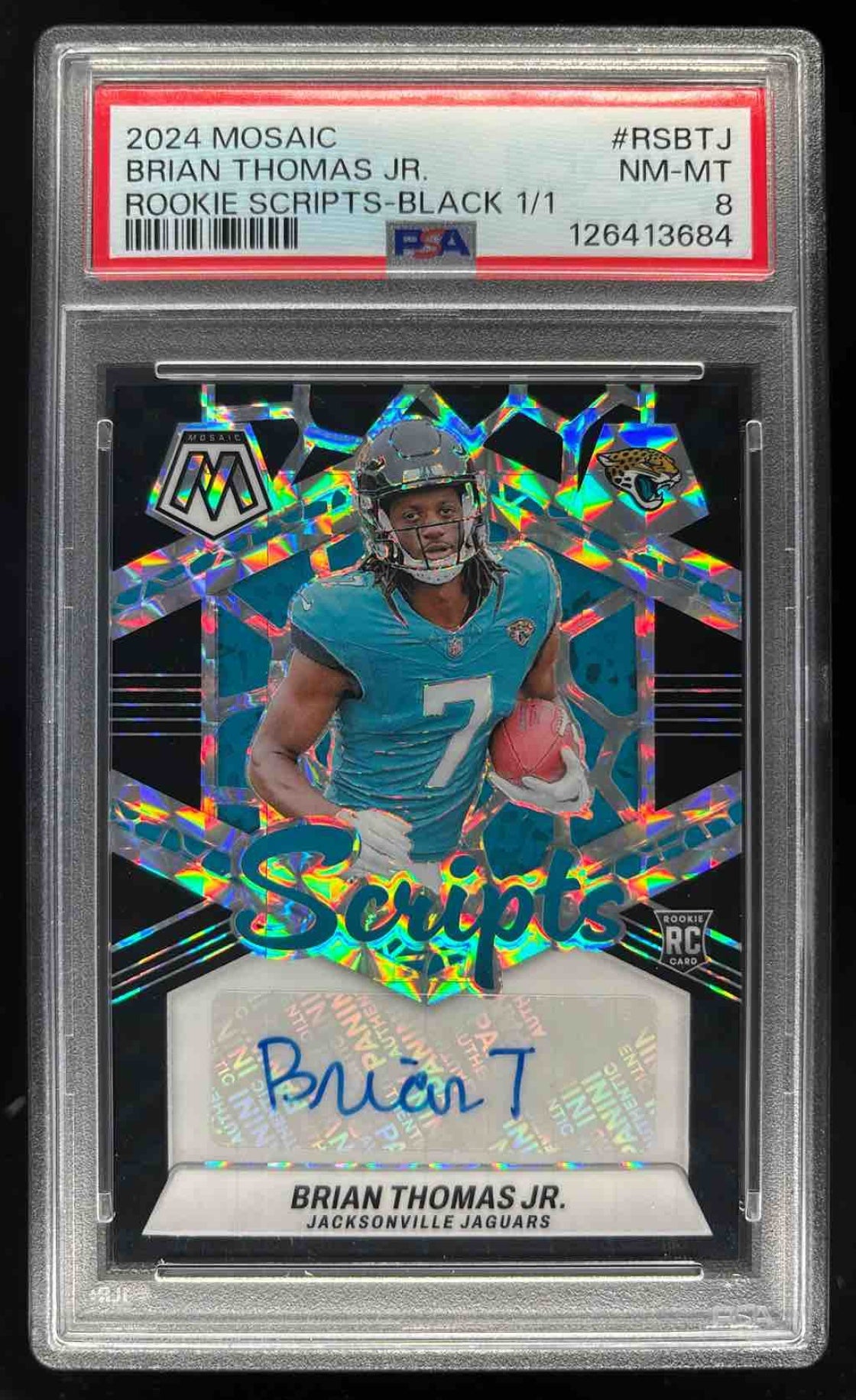2024 Panini Mosaic Rookie Scripts Black #BTJ Brian Thomas Jr. RC Auto 1/1 PSA 8