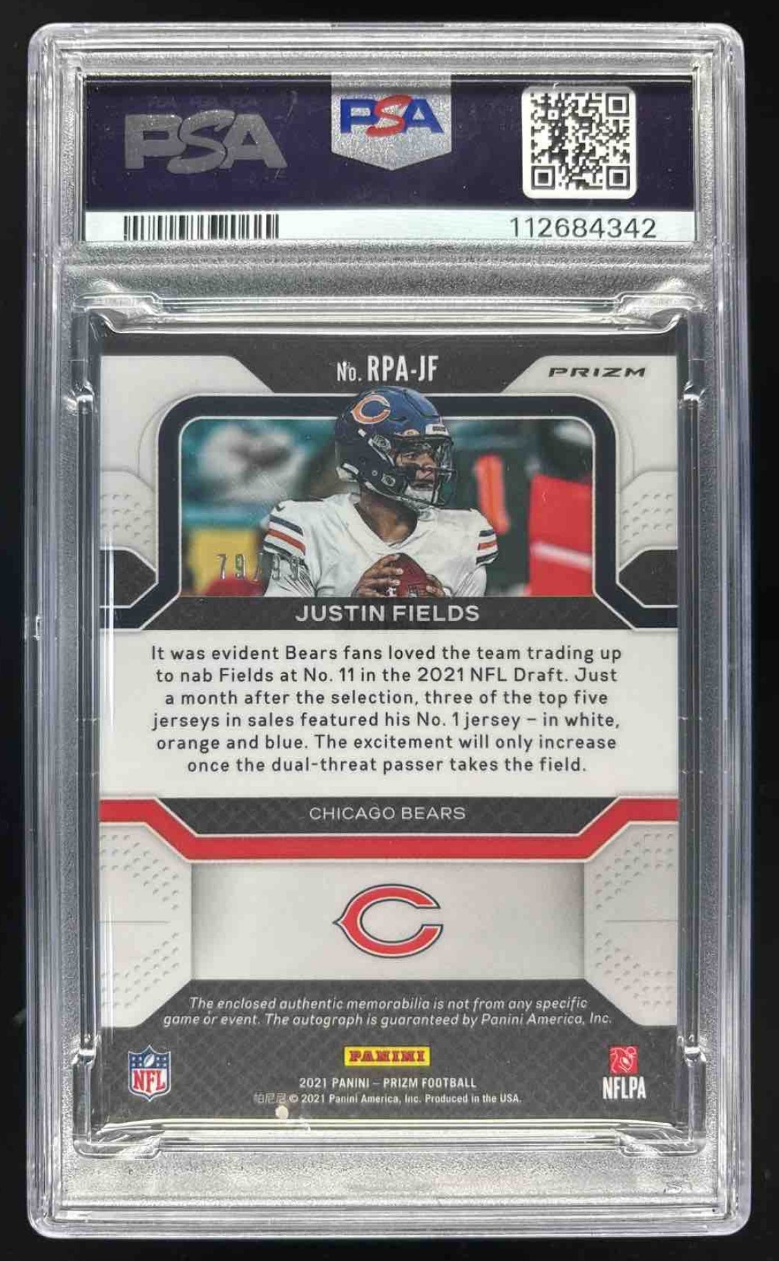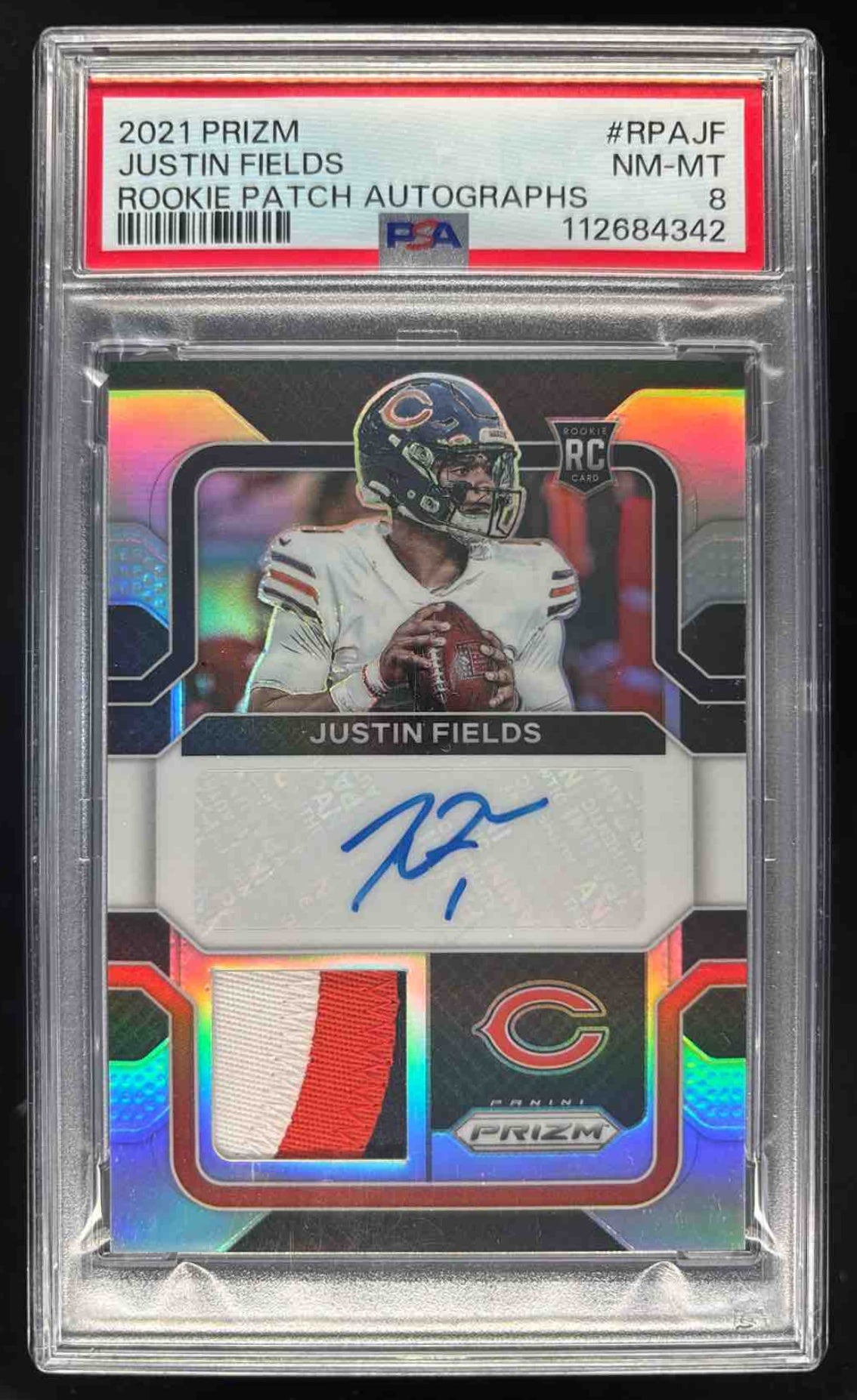 2021 Panini Prizm Rookie Patch Prizm Silver Justin Fields RC Auto /99 PSA 8