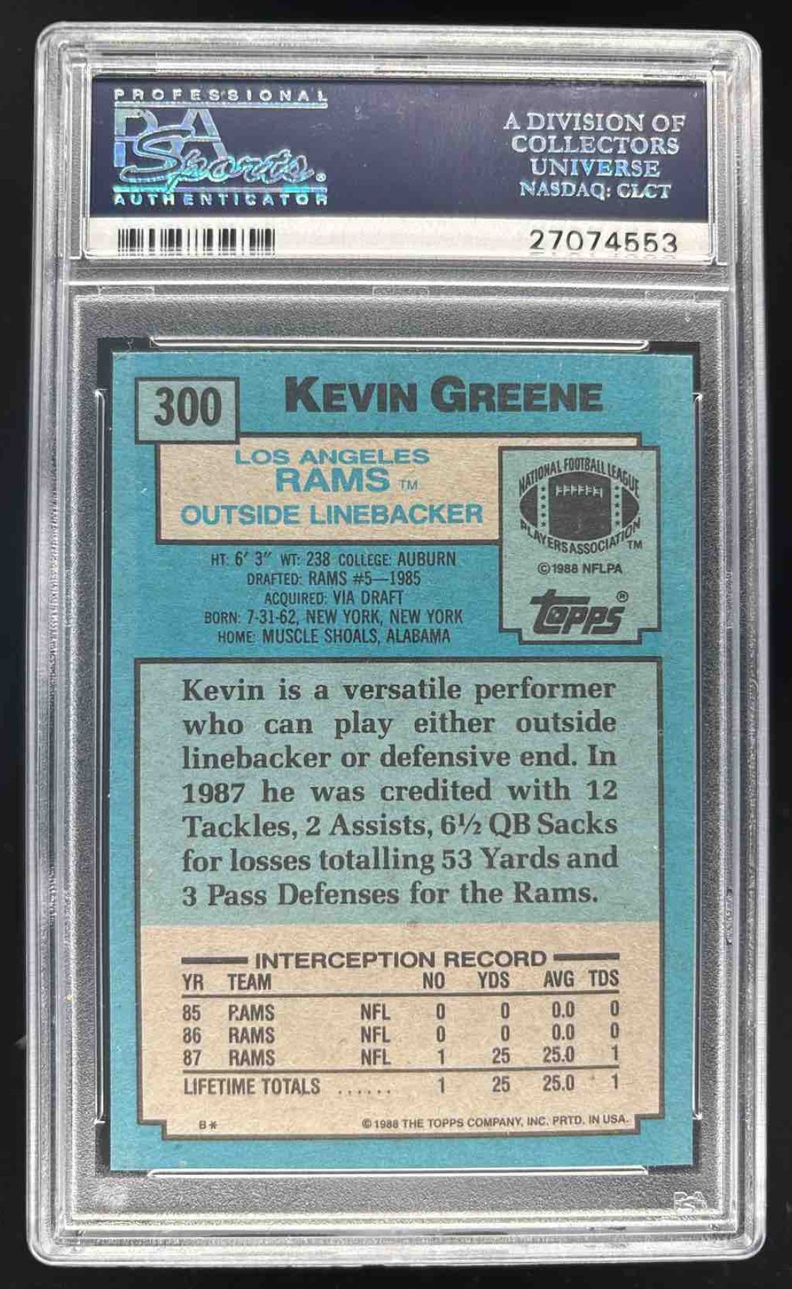1988 Topps #300 Kevin Greene RC PSA 9