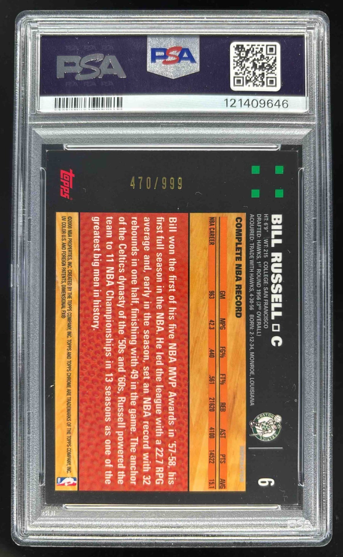2007-08 Topps Chrome Refractors #6 Bill Russell /999 PSA 9
