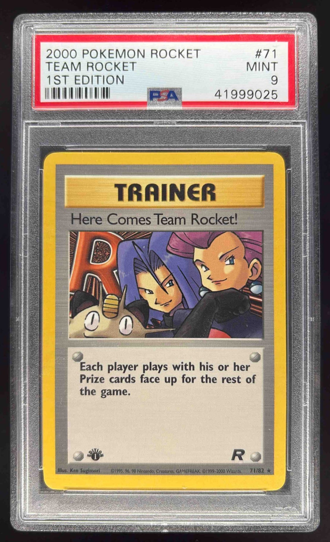 2000 Pokemon Team Rocket First Edition #71/82 Here Comes Team Rocket! PSA 9