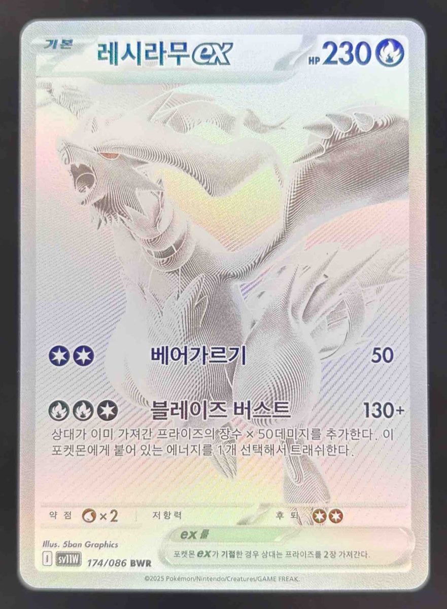 2025 Pokemon Koarean SV11W BW Rare #174 Reshiram ex