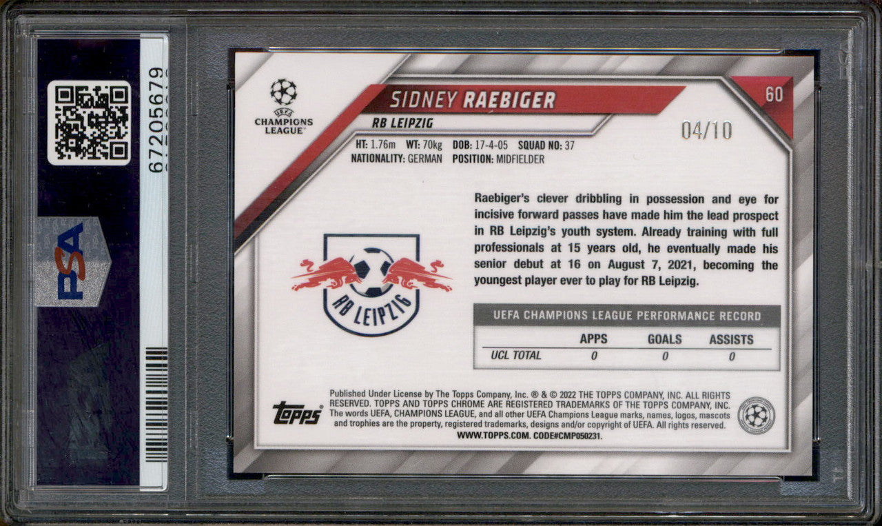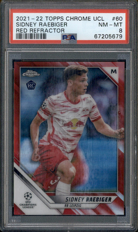 2021 Topps Chrome UCL Red Refractor #+60 Sidney Raebiger RC Rookie /10 PSA 8