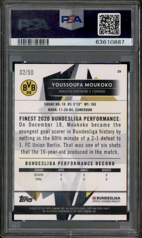 2020 Finest Bundesliga Gold Refractor #29 Youssoufa Moukoko RC /50 PSA 9