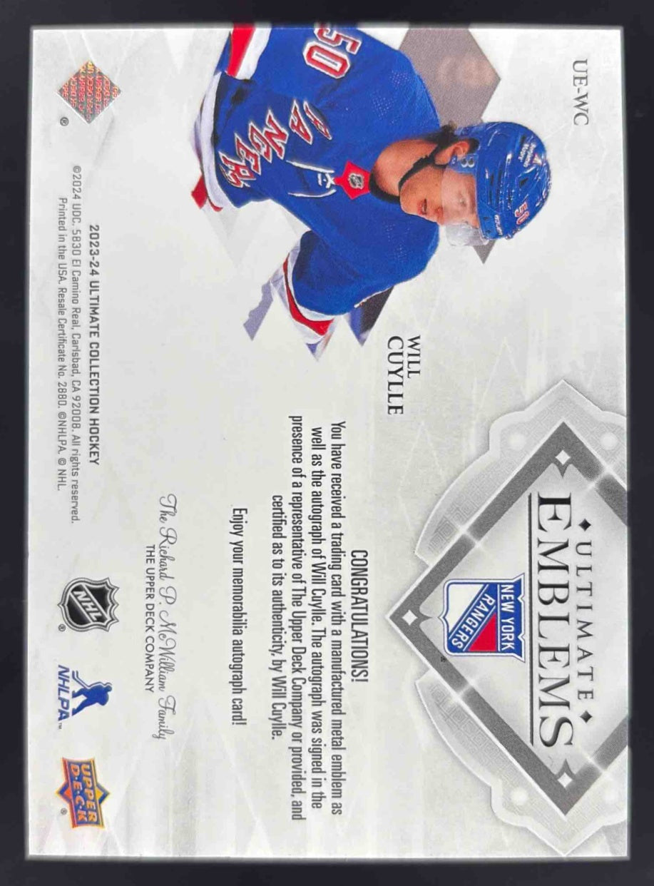 2023-24 Ultimate Collection Emblems Auto #UE-WC Will Cuylle Autograph RC Auto