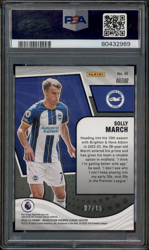 2022 Revolution Premier League Kaleido #65 Solly March /15 PSA 10