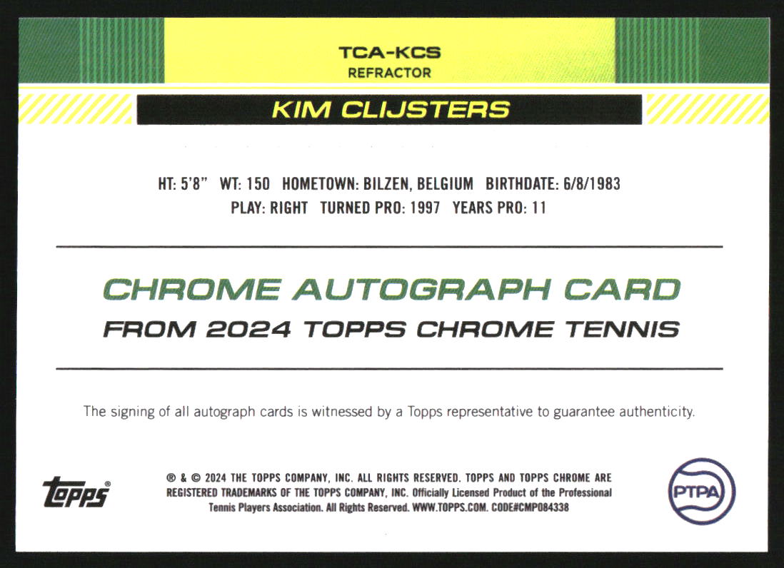 2024 Topps Chrome Tennis Autographs II Refractors #TCAKCS Kim Clijsters Auto /99