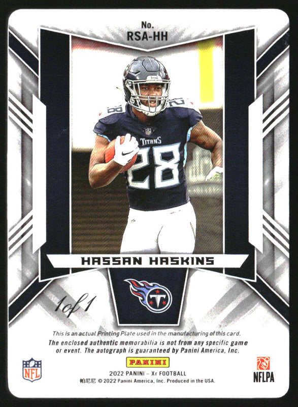 2022 Panini XR Rookie Swatch Auto Printing Plates Magenta Hassan Haskins RC 1/1