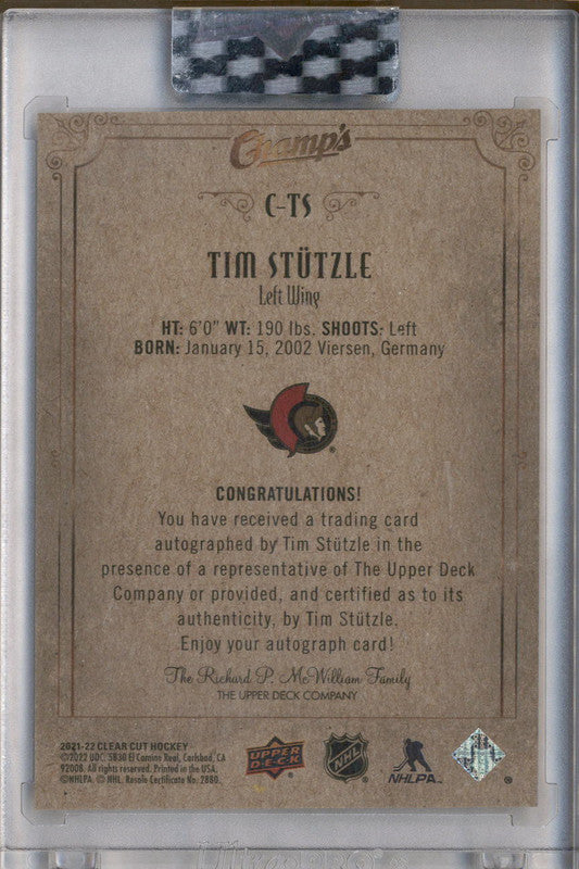 2021-22 Upper Deck Clear Cut Champs Autographs Green #CTS Tim Stutzle Auto /25