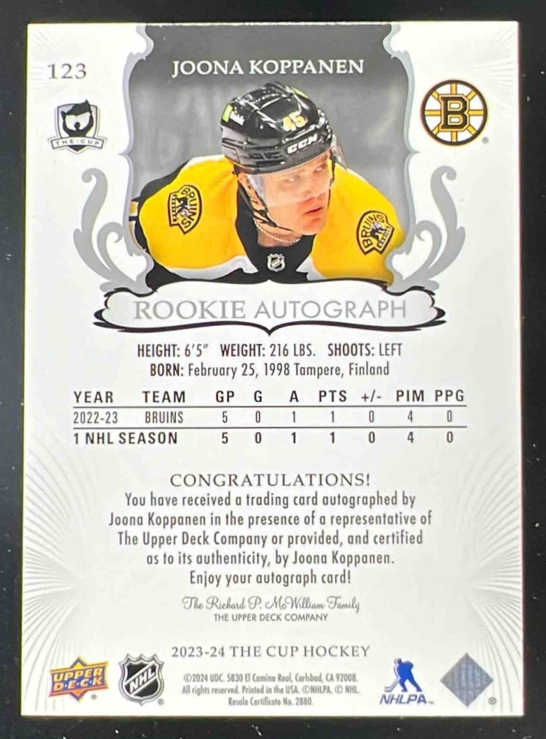 2023-24 The Cup Gold Spectrum Foil #123 Joona Koppanen Autograph RC Auto /36