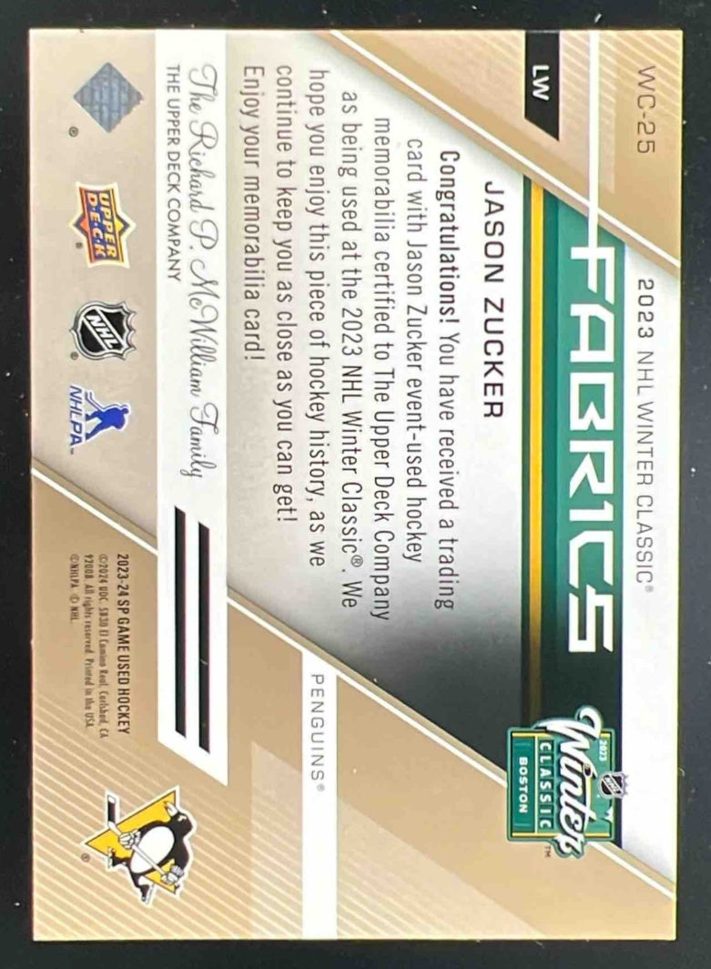 2023-24 Upper Deck SP Game Used Winter Classic Fabrics Patch Jason Zucker /35