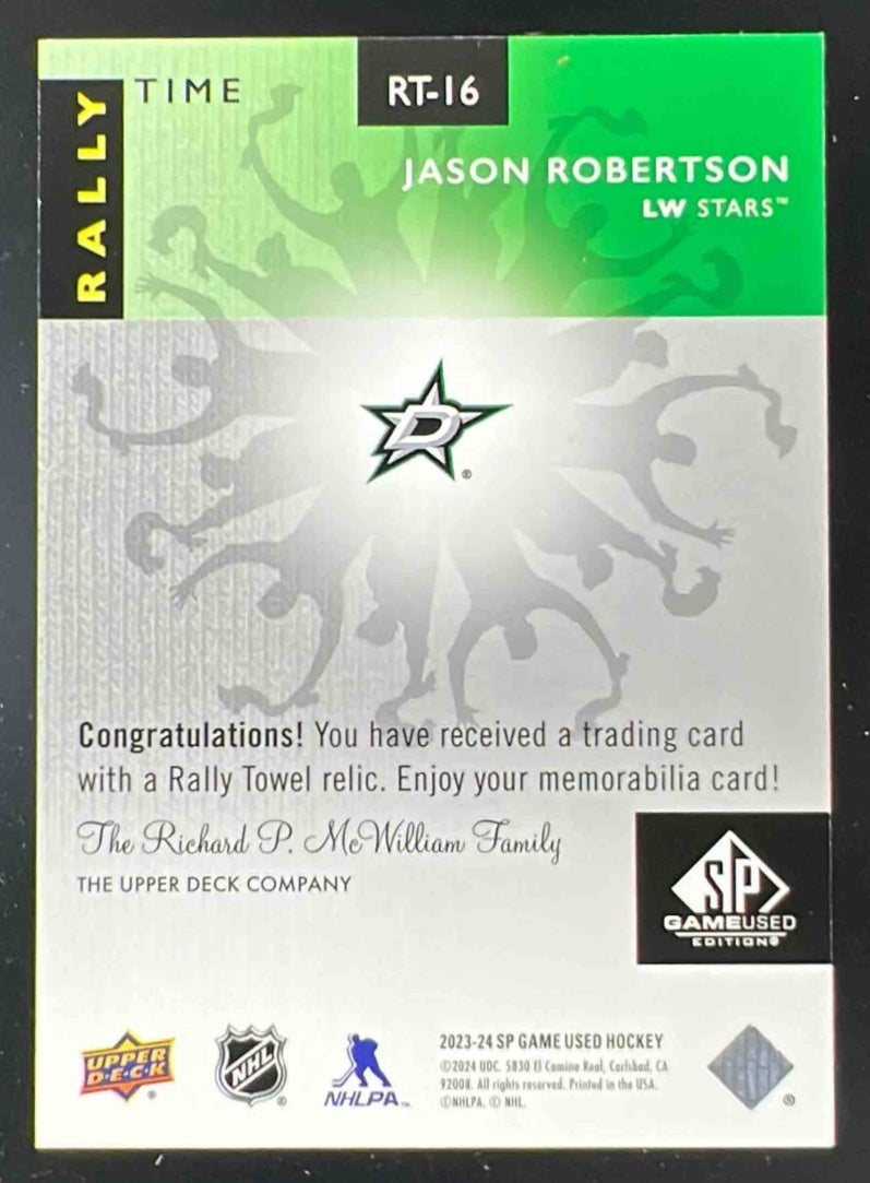 2023 Upper Deck SP Game Used Rally Time Towel Relics #RT-16 Jason Robertson /50
