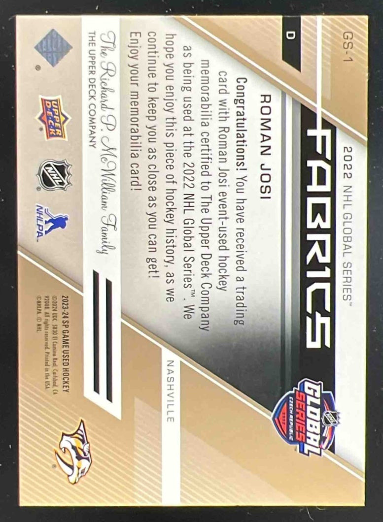 2023-24 Upper Deck SP Game Used Global Series Fabric Patch #GS-1 Roman Josi /35