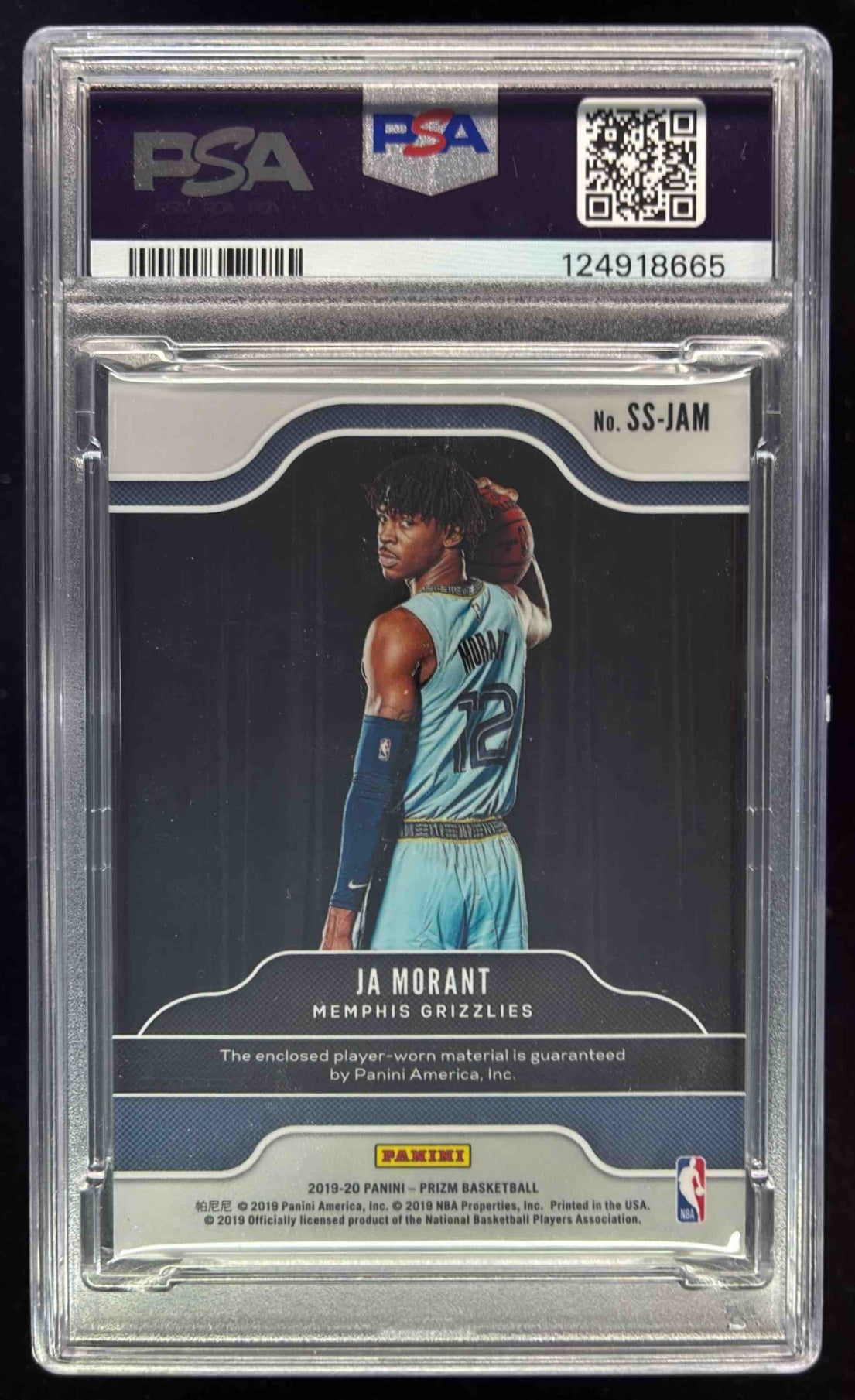 2019-20 Panini Prizm Sensational Swatches #SS-JAM Ja Morant RC PSA 9