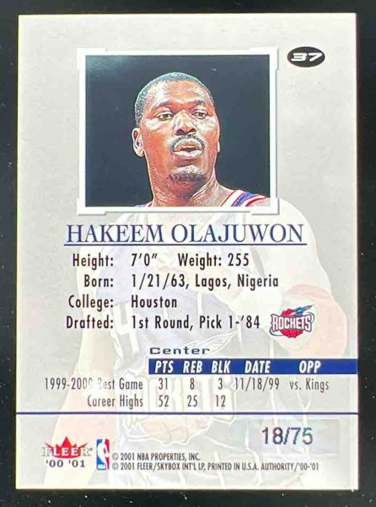 2000-01 Fleer Authority Prominence SN75/SN25 #37 Hakeem Olajuwon /75