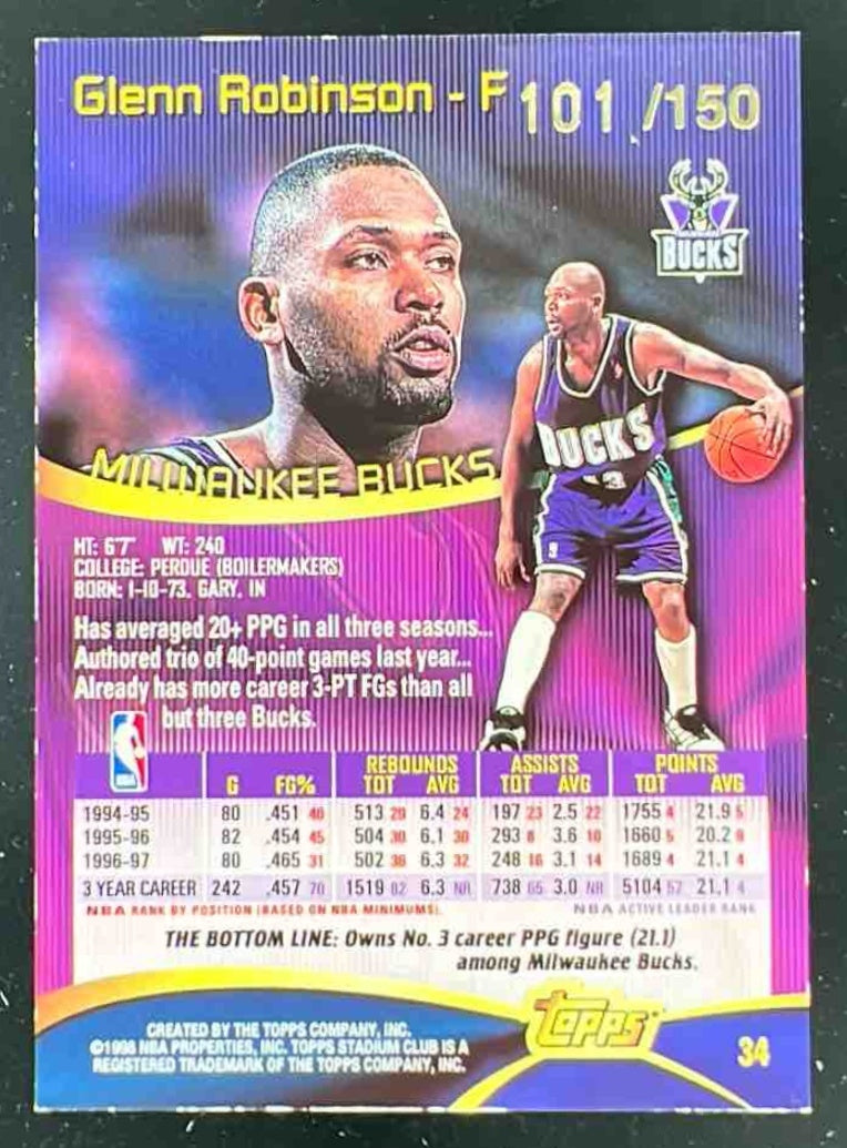 1997-98 Topps Stadium Club One of a Kind #34 Glenn Robinson /150