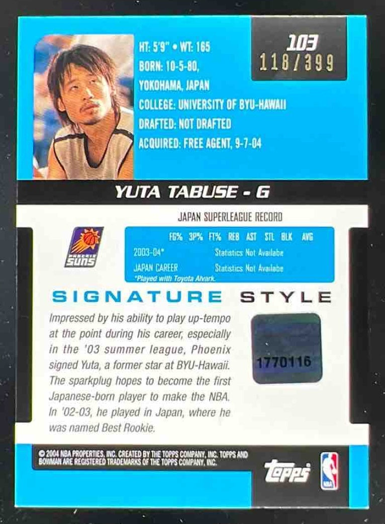 2004-05 Bowman Signature #103 Yuta Tabuse Autograph RC Auto /399