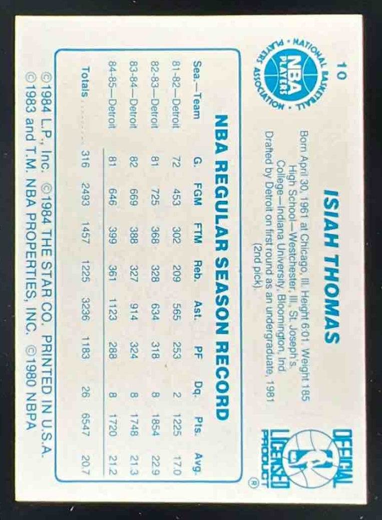 1985-86 Star #10 Isiah Thomas