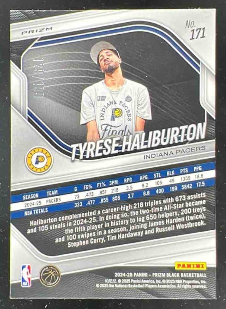 2024-25 Panini Prizm Black Blue Prizms #171 Tyrese Haliburton /199