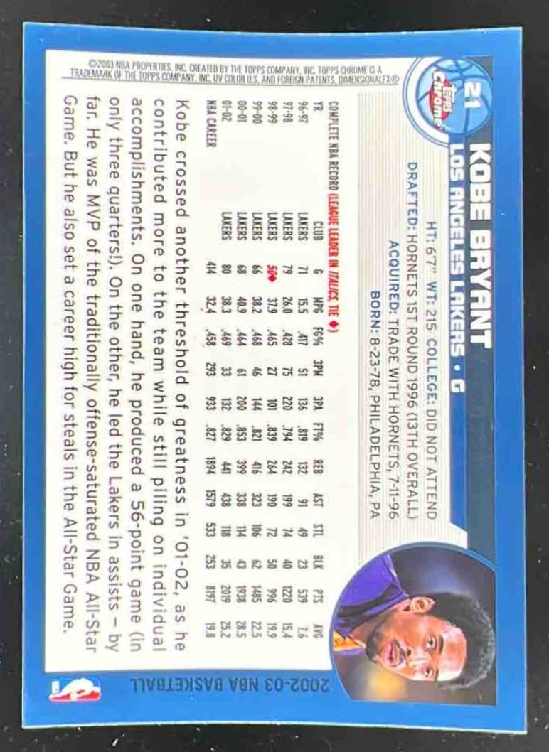 2002-03 Topps Chrome #21 Kobe Bryant