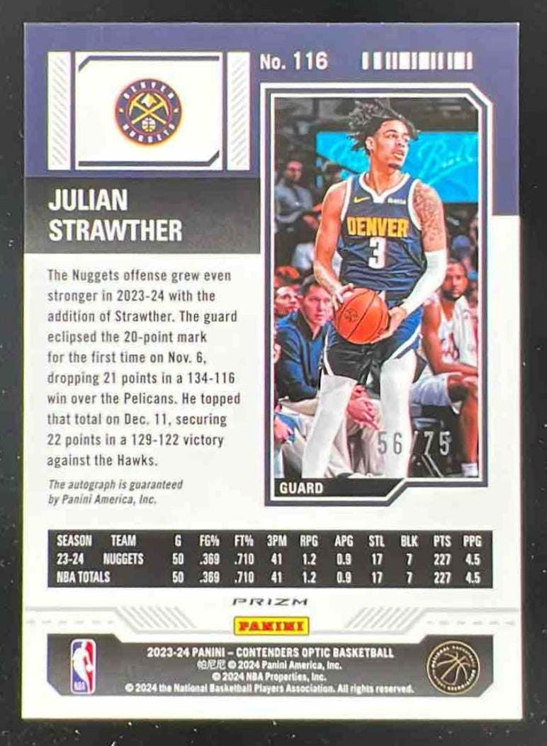 2023-24 Contenders Optic Rookie Ticket Green #116 Julian Strawther RC Auto /75