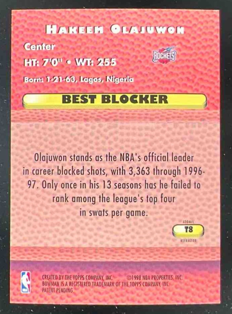 1997-98 Bowman 's Best Techniques Atomic Refractors #T8 Hakeem Olajuwon