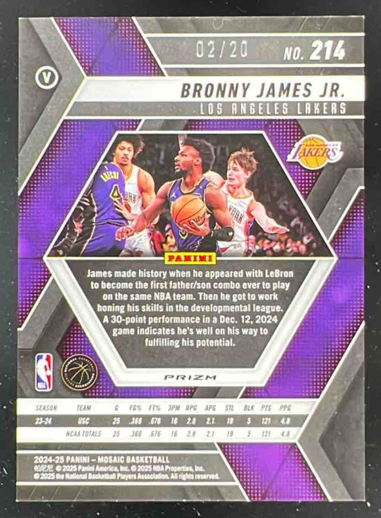 2024-25 Panini Mosaic Fast Break Rookie Variation Pink Bronny James Jr. RC /20