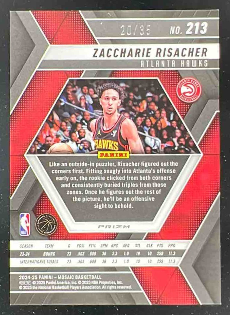 2024-25 Panini Mosaic Choice White Mosaic #213 Zaccharie Risacher RC /35