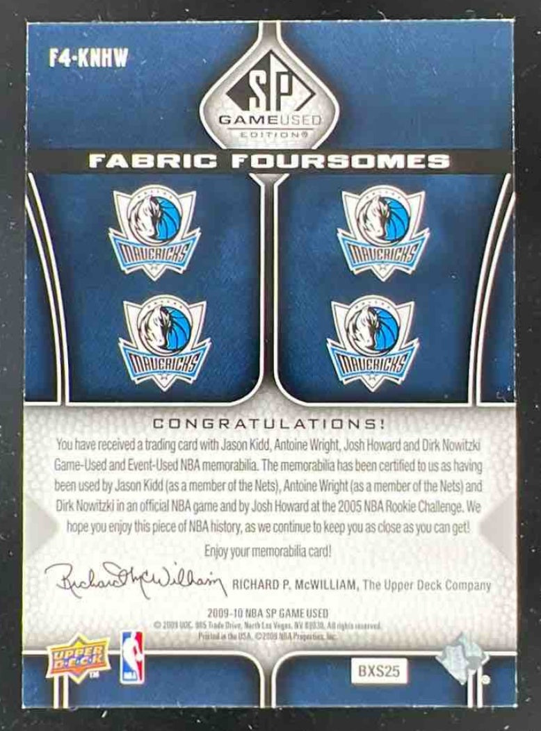 2009 SP Game Used Fabric Foursome Jason Kidd Dirk Nowitzki Howard Wright /125