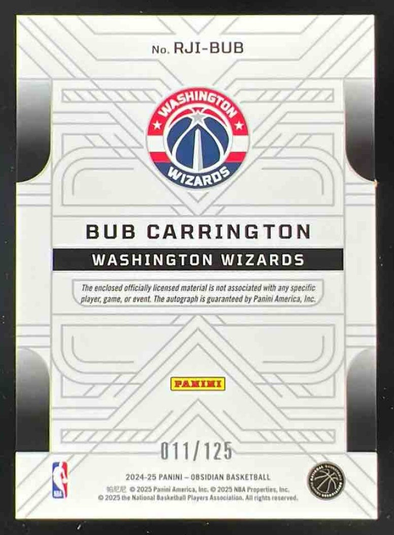 2024-25 Panini Obsidian Rookie Jersey Ink #36 Bub Carrington RC Auto /125