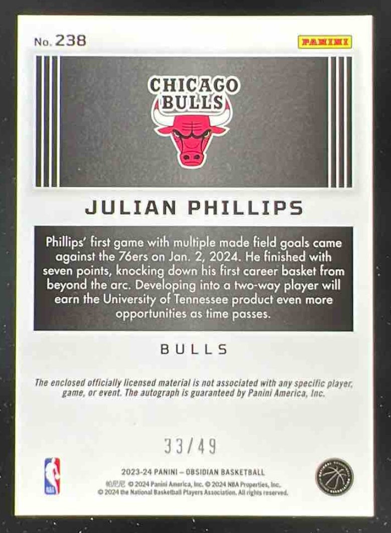 2023 Obsidian Electric Etch Purple Flood Julian Phillips Autograph RC Auto /49