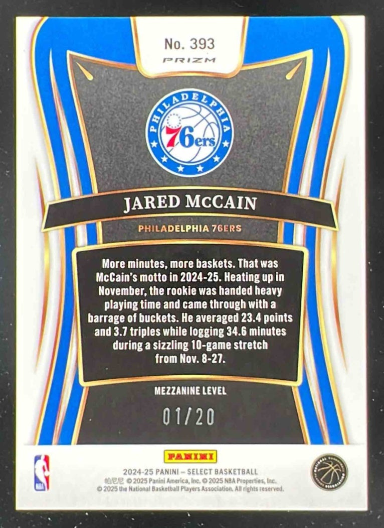 2024-25 Panini Select Mezzanine Blue Stars Prizm #393 Jared McCain RC /20