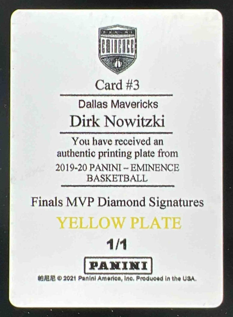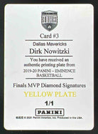 2019-20 Eminence Finals MVP Diamond Printing Plate Yellow Dirk Nowitzki 1/1