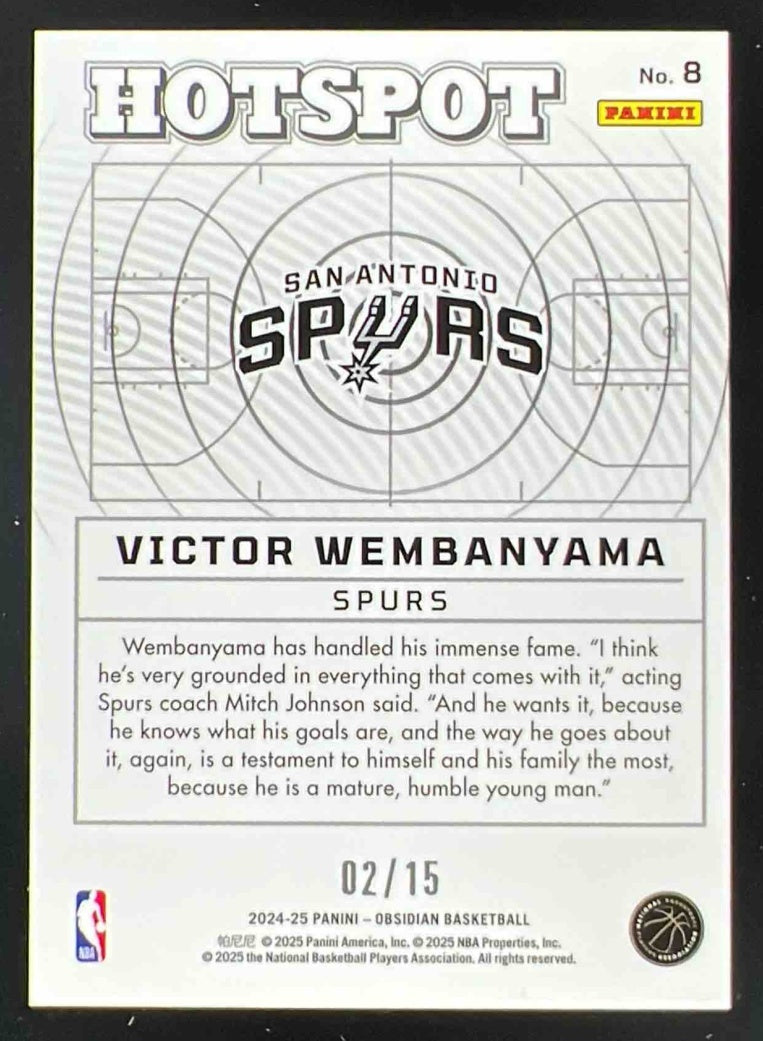 2024 Panini Obsidian Hotspot Electric Etch Hot Springs #8 Victor Wembanyama /15