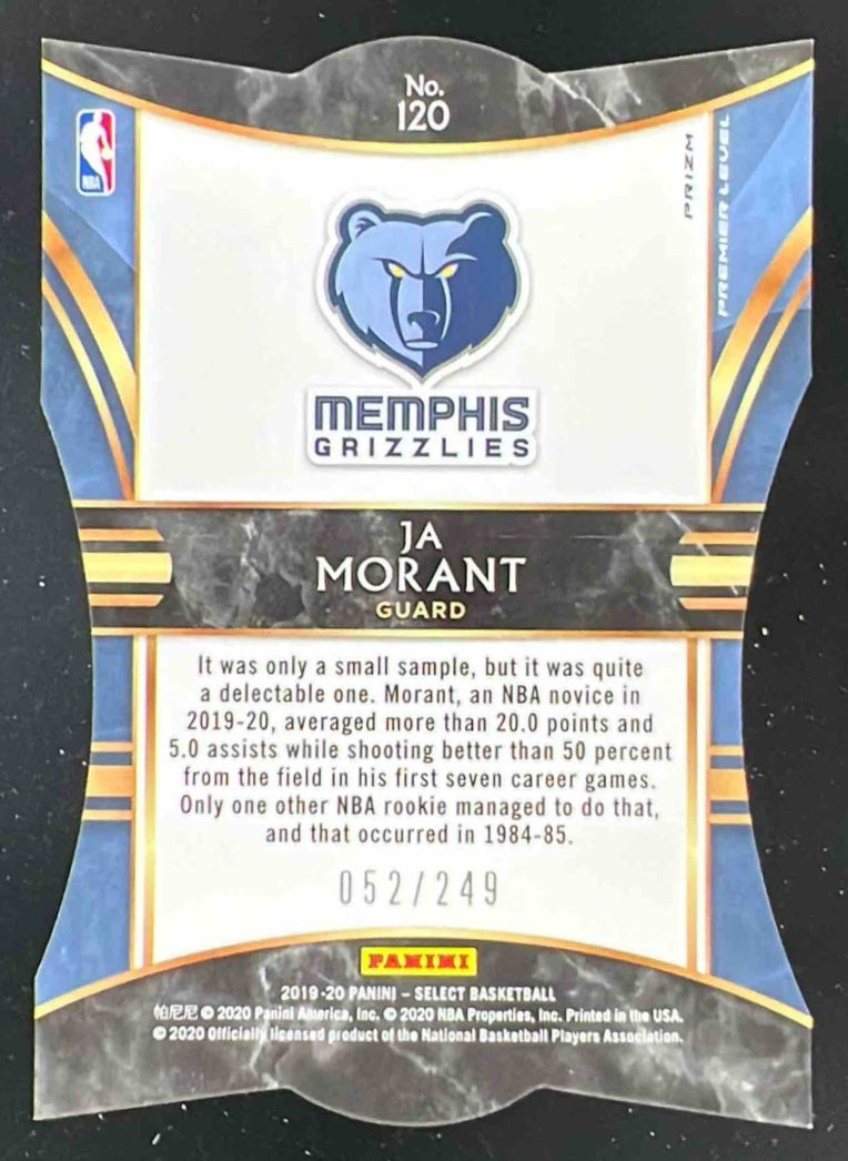 2019-20 Panini Select Blue Prizms Die Cut #120 Ja Morant RC Premier /249