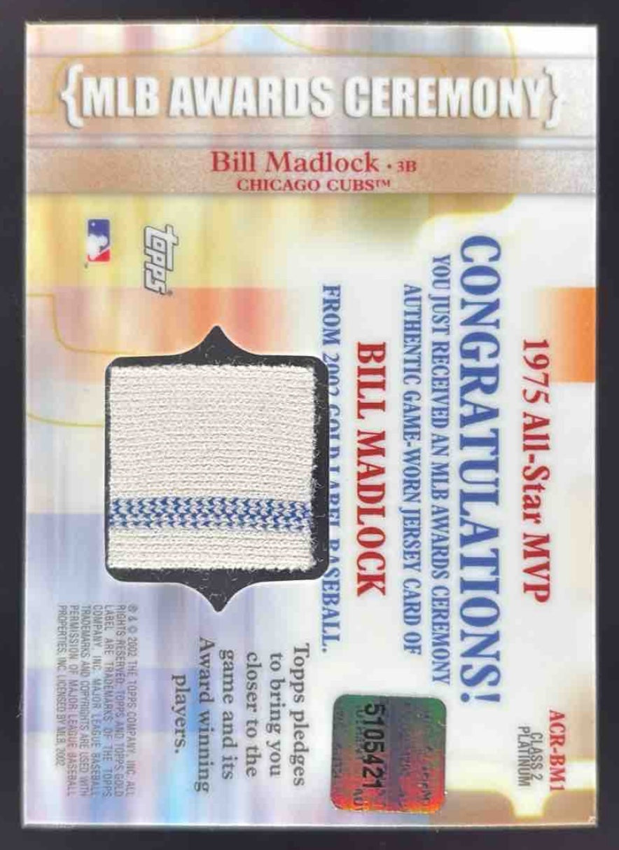 2002 Topps Gold Label MLB Awards Ceremony Relics Class 2 Platinum Bill Madlock