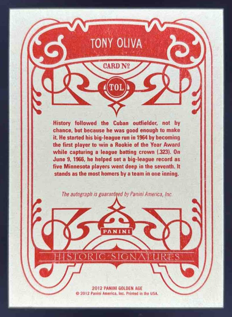 2012 Panini Golden Age Historic Signatures #TOL Tony Oliva Autograph Auto