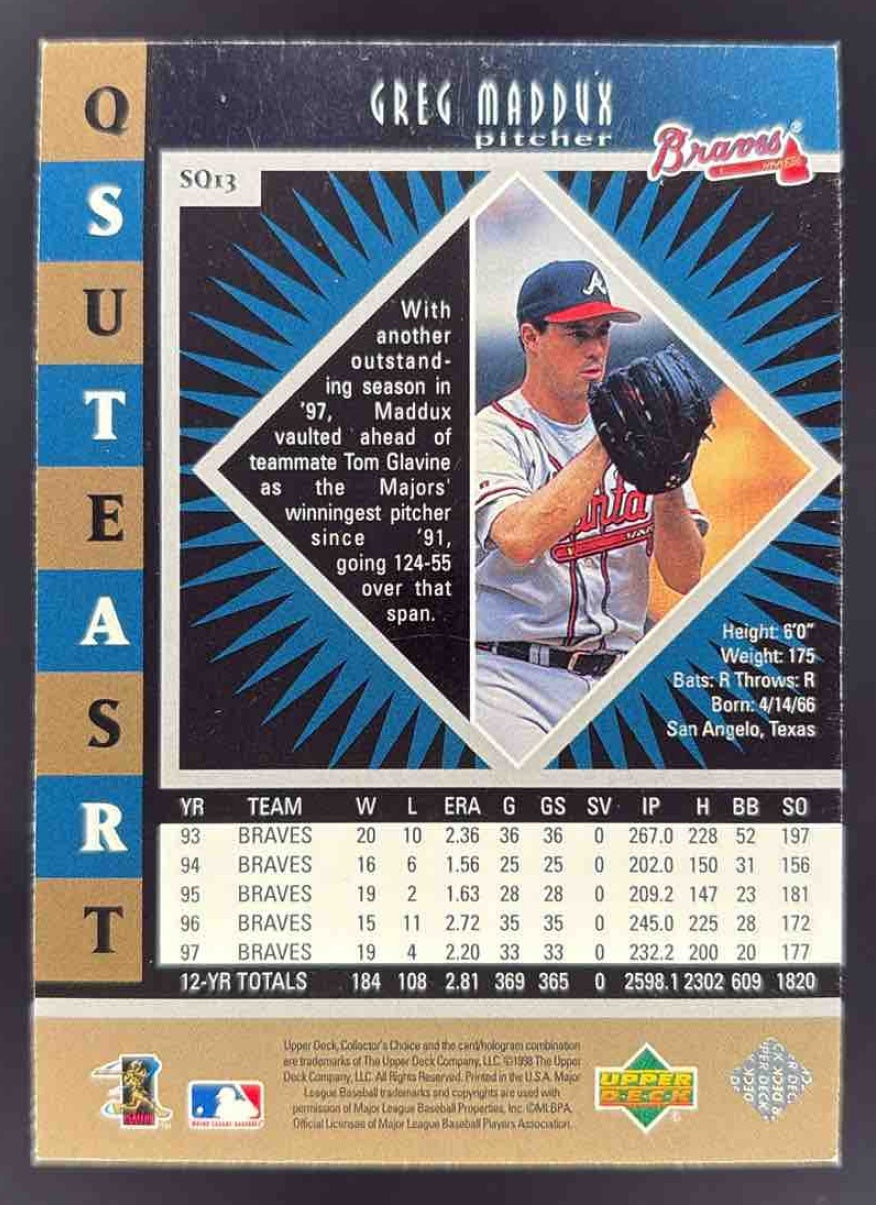 1998 Upper Deck Collector's Choice StarQuest Triple #SQ13 Greg Maddux