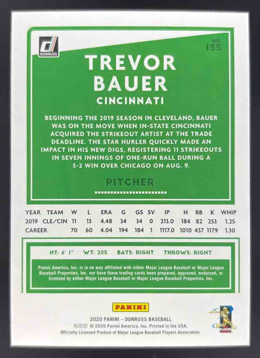 2020 Panini Donruss Artist Proof #155 Trevor Bauer /10