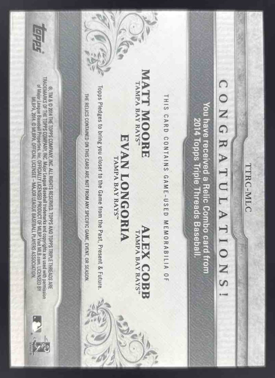 2014 Topps Triple Threads Relic Combos Alex Cobb Evan Longoria Matt Moore /36