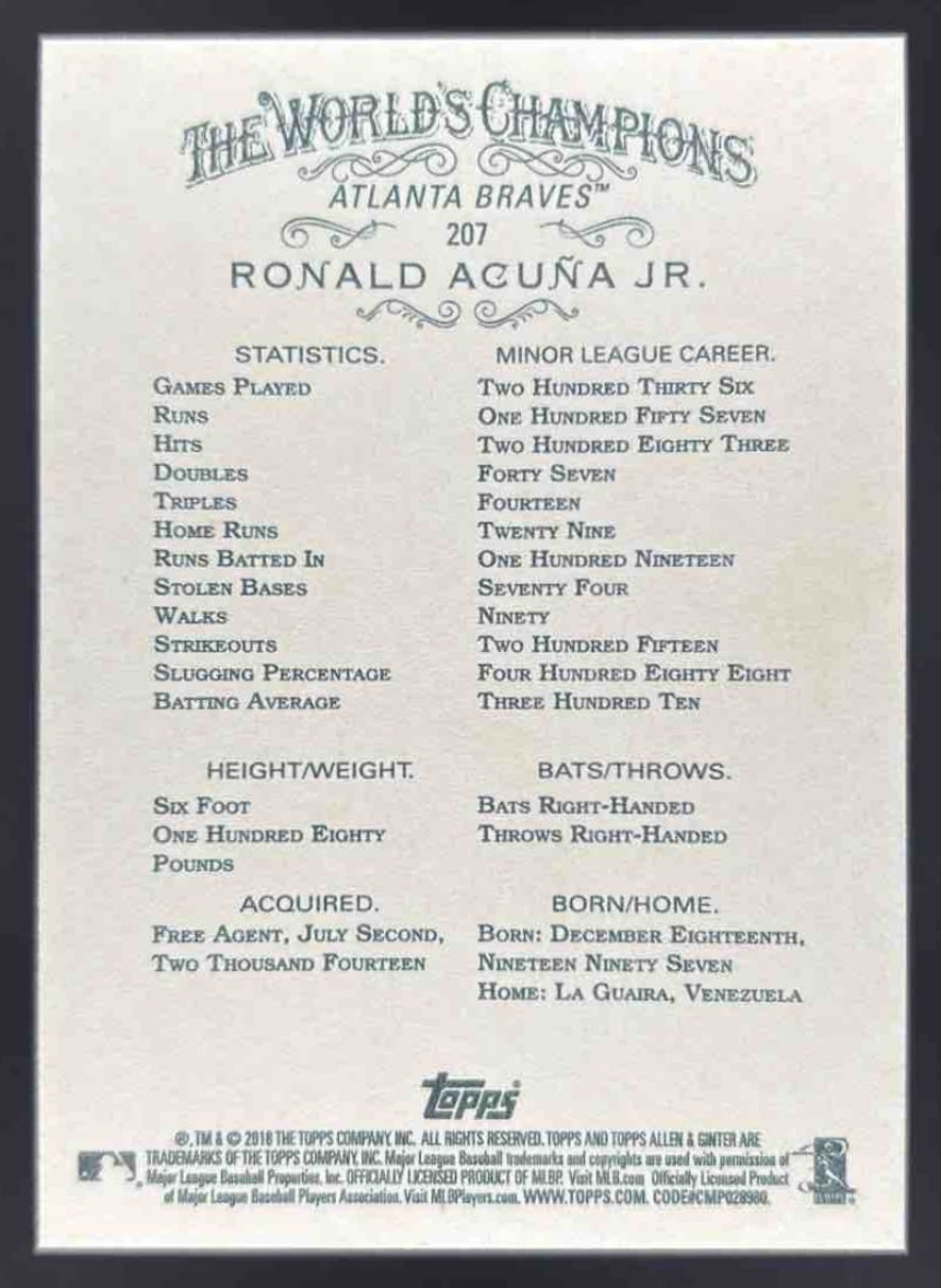 2018 Topps Allen & Ginter #207 Ronald Acuna Jr. RC
