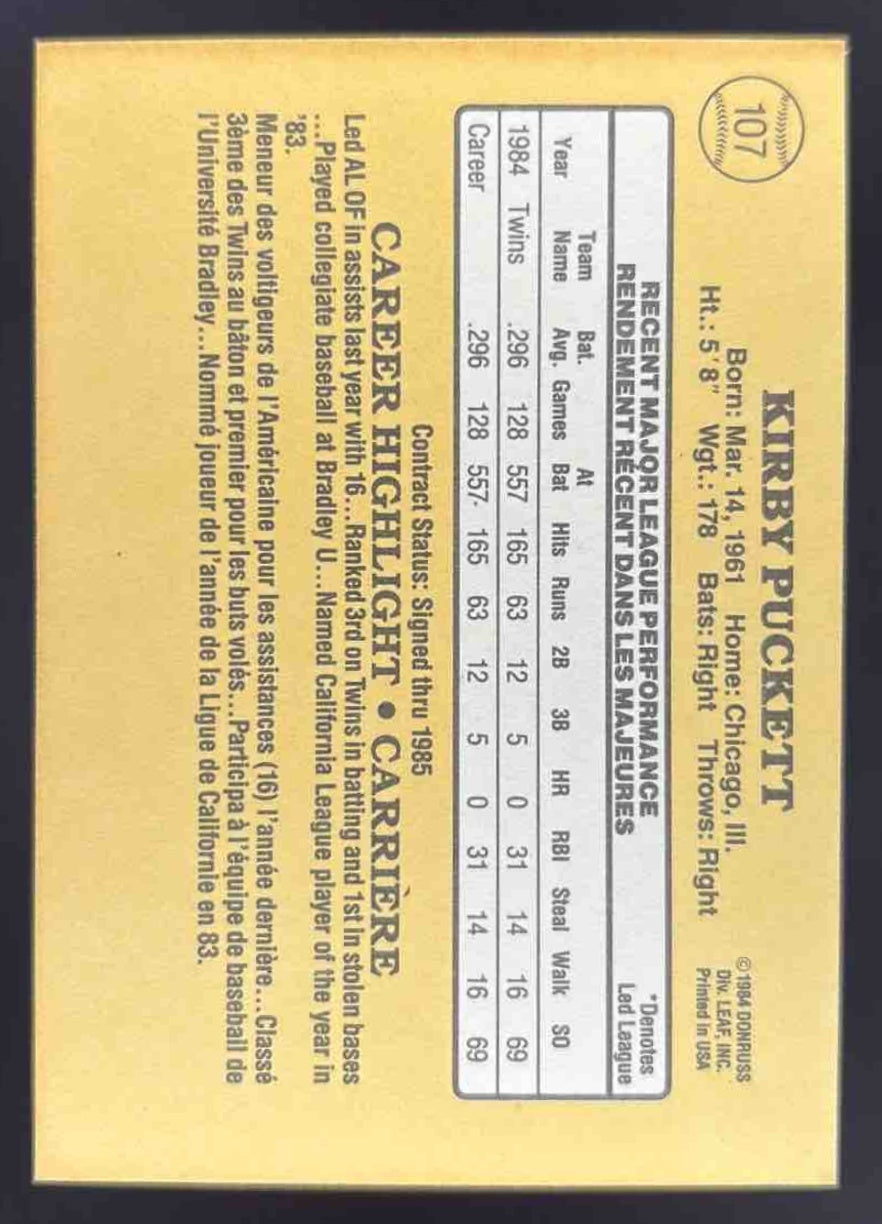1985 Leaf #107 Kirby Puckett RC