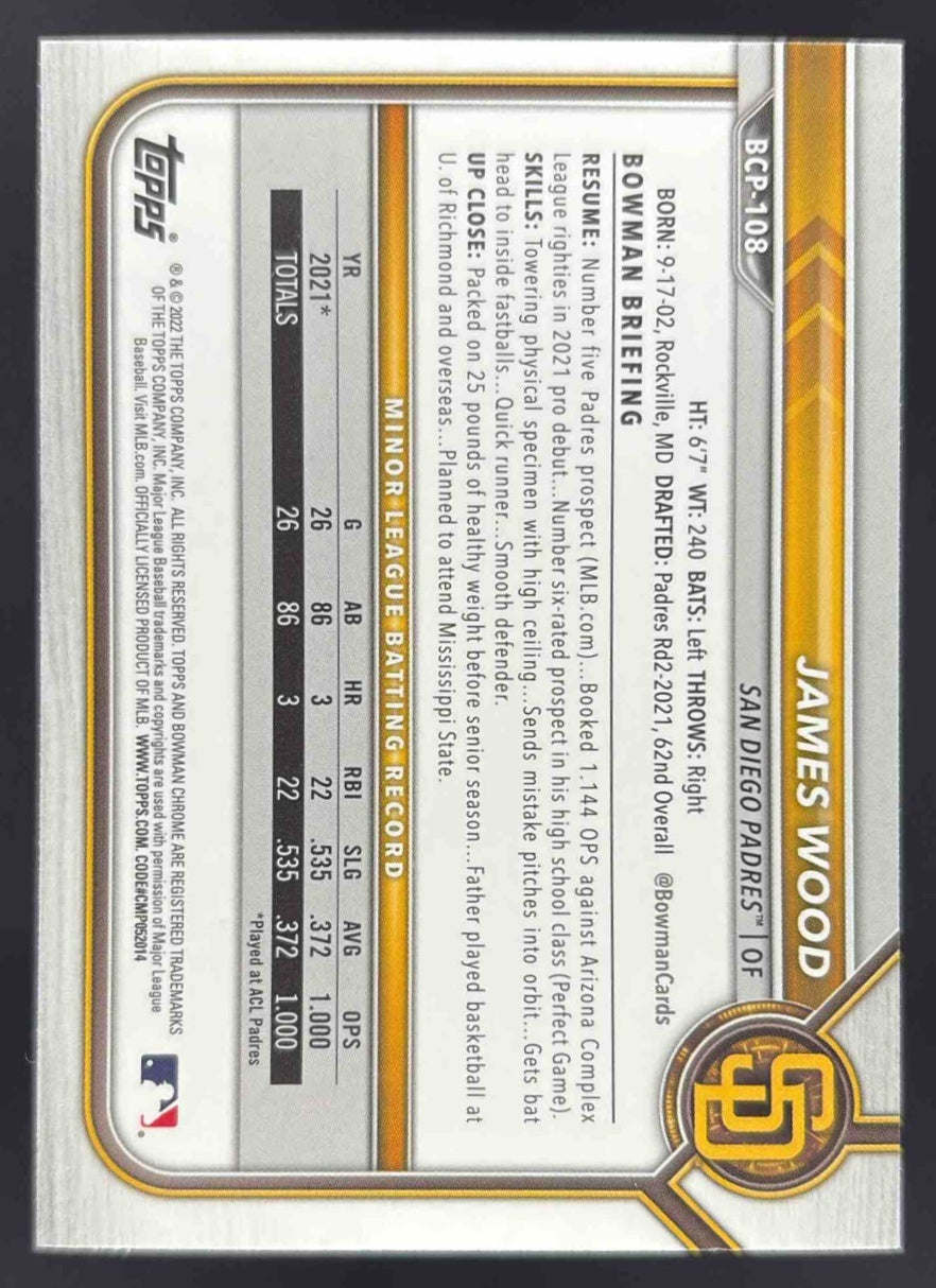 2022 Bowman Mega Box Mojo Refractor #BCP-108 James Wood